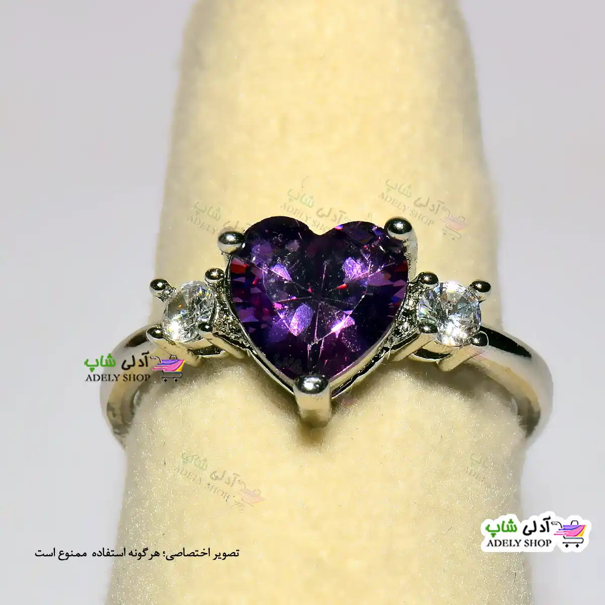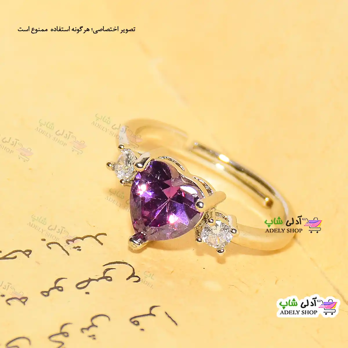 تصویر انگشتر فری سایز استیل با نگین قلبی