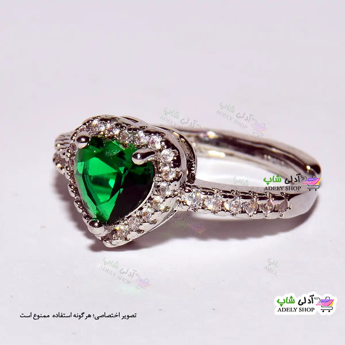 انگشتر فری سایز استیل با نگین قلبی سبز
