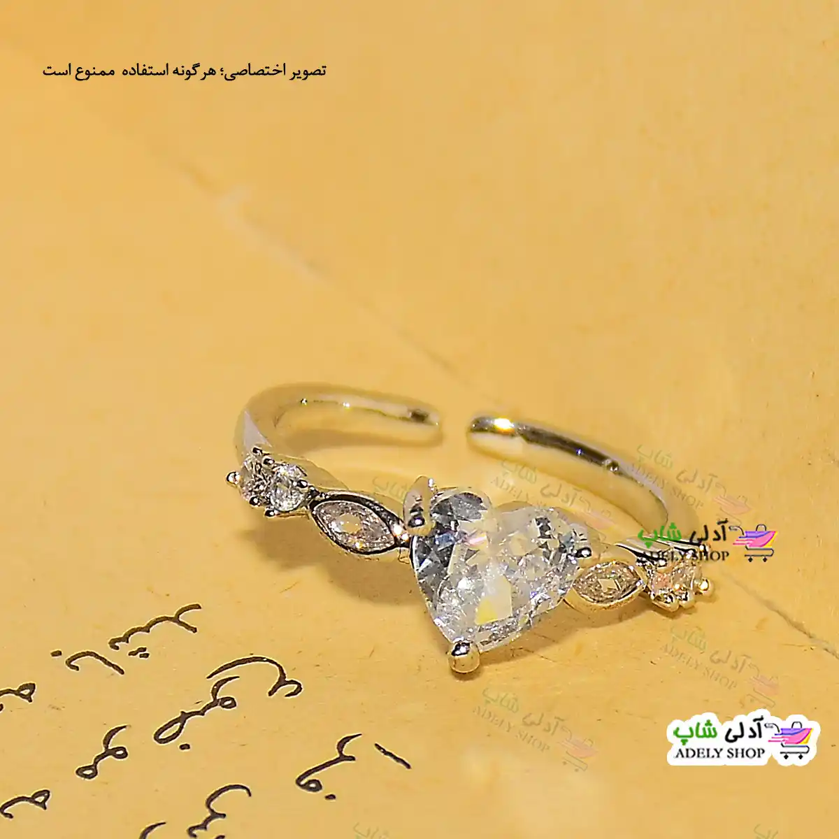 تصویر انگشتر فری سایز استیل با نگین قلبی