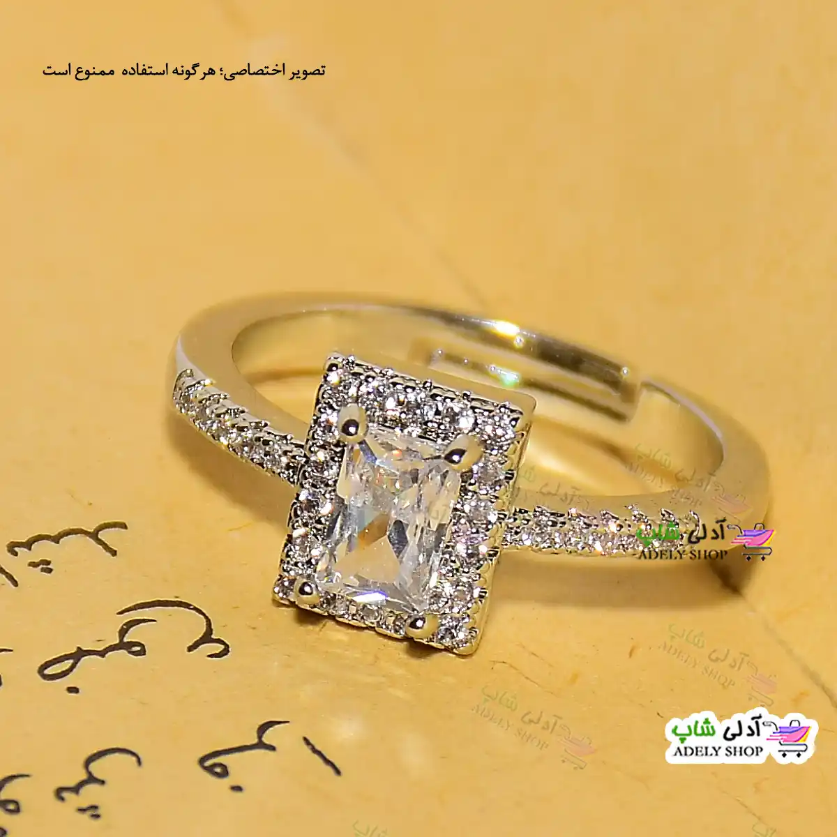 این انگشتر با نگینهای مخراجکاری شده ساخته شده که کاملاً محکم بوده و بدون ریزش هستند.