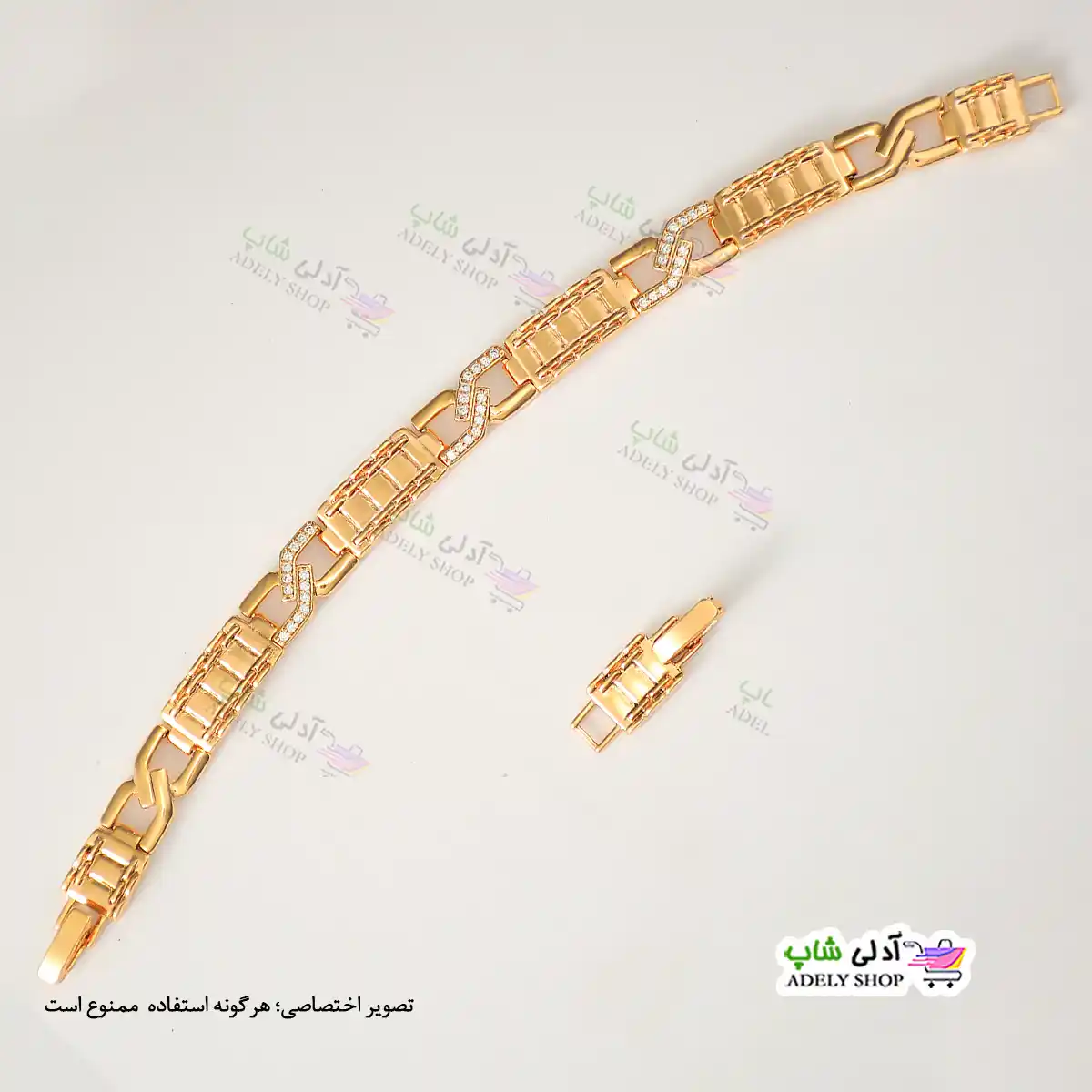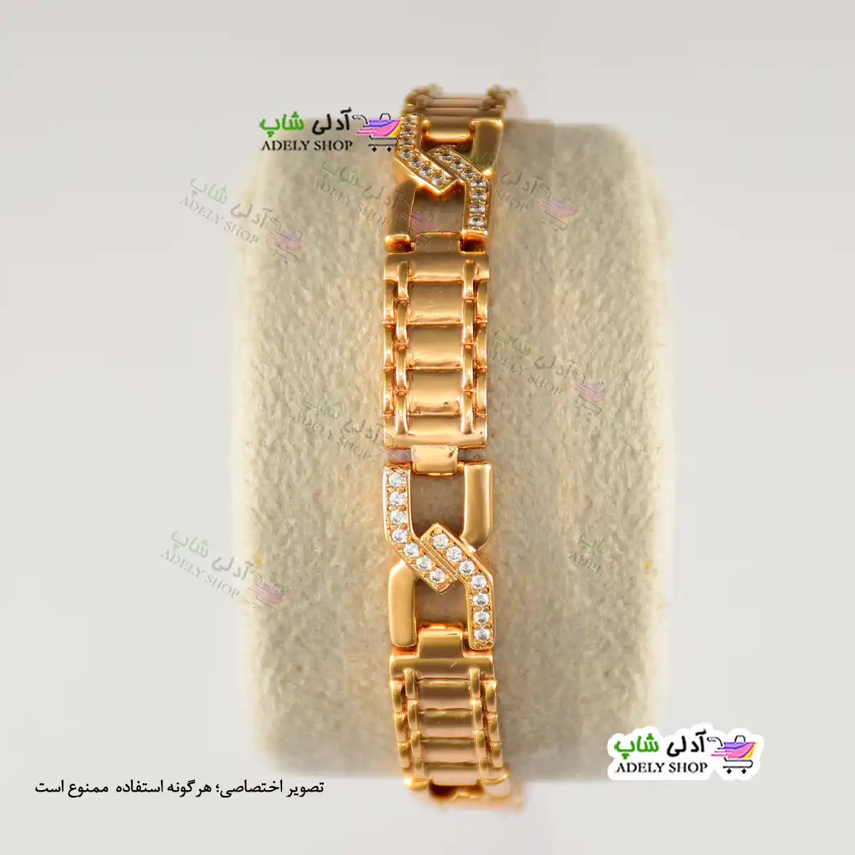 دستبند زنانه ژوپینگ با طراحی لوکس و ترکیب نگینهای کریستالی درخشان، انتخابی شیک برای بانوان خوشاستایل است. این دستبند مجلسی زنانه با آبکاری طلای مقاوم و رنگ ثابت، جلوهای ظریف و چشمنواز به استایل شما میبخشد.