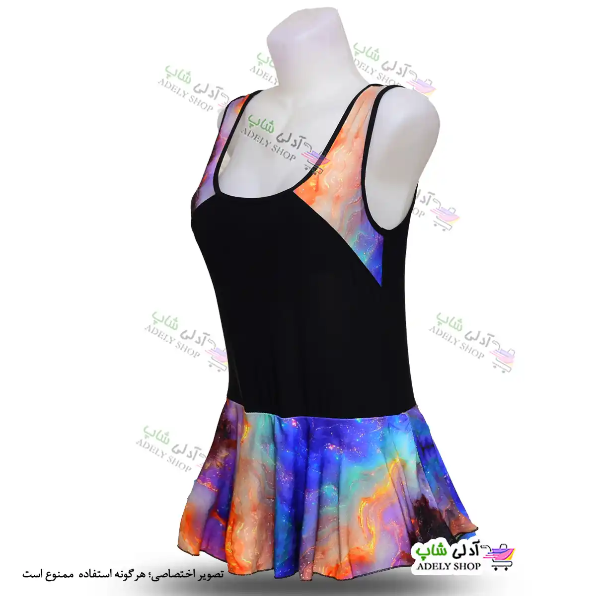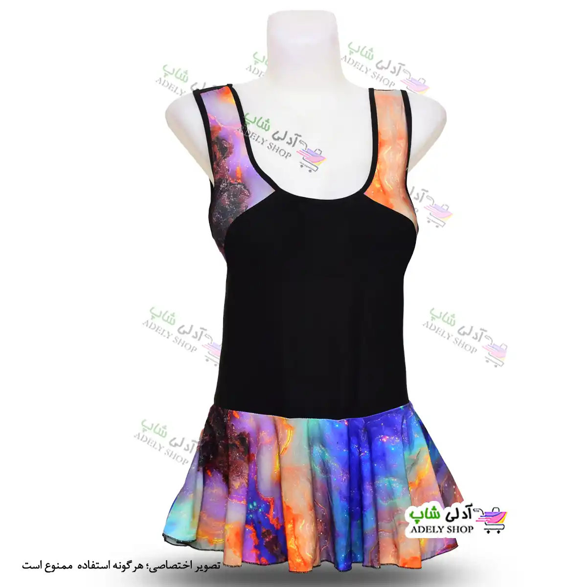 1. استایل پوشیده با طراحی دامن دار: این مدل پوشش بیشتری نسبت به مایوهای معمولی دارد و برای کسانی که به راحتی و حریم شخصی در استخر اهمیت می‌دهند، مناسب است.