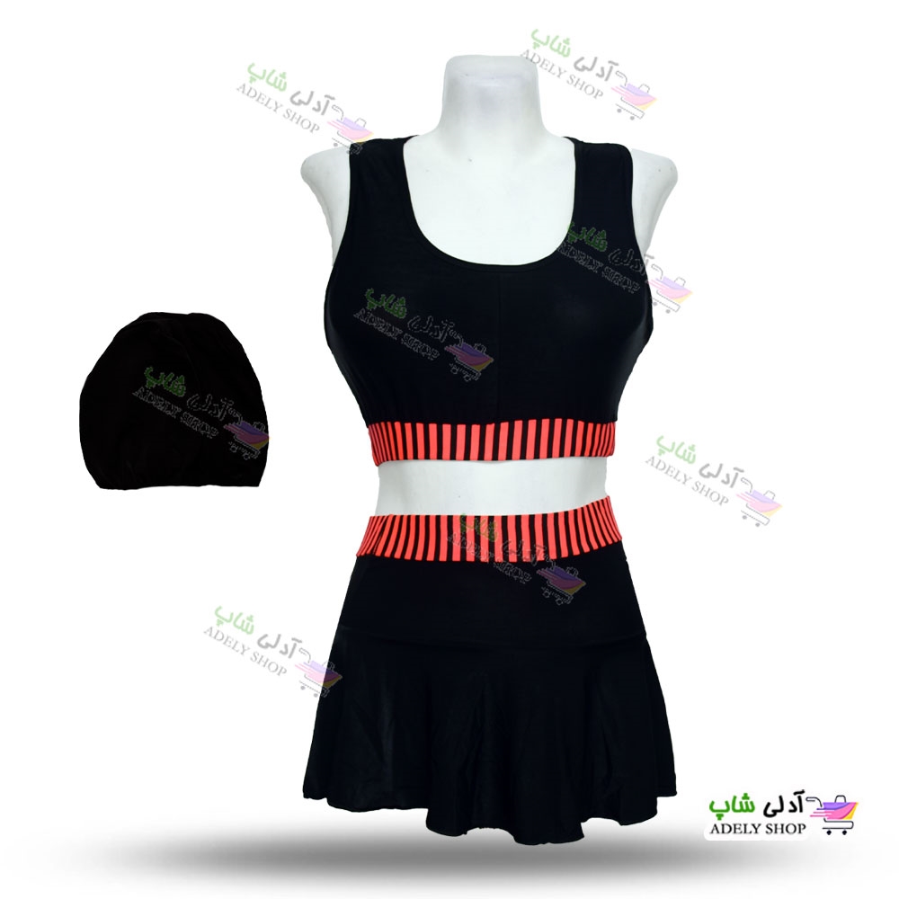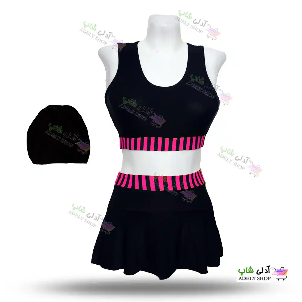 مایو دو تکه دامن دار زنانه و دخترانه طرح Nike به همراه کلاه